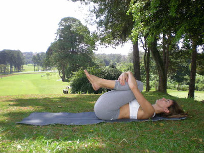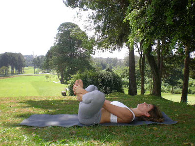 Para finalizar faça uma suave torção em Jathara Parivartanasana (postura da torção do abdome) e durante a permanência relaxe na posição e faça algumas respirações profundas.